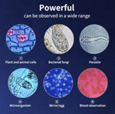Application Hospital Education Laboratory Magnification 40X-5000X Eyepiece WF10/WF25/Double multiplier mirror Type Optical Biological Microscope Objective 4X/10X/40X/100X Illumination LED Illumination Viewing head 360 Rotatable Light source LED Cold Light Focusing Fine Adjustment