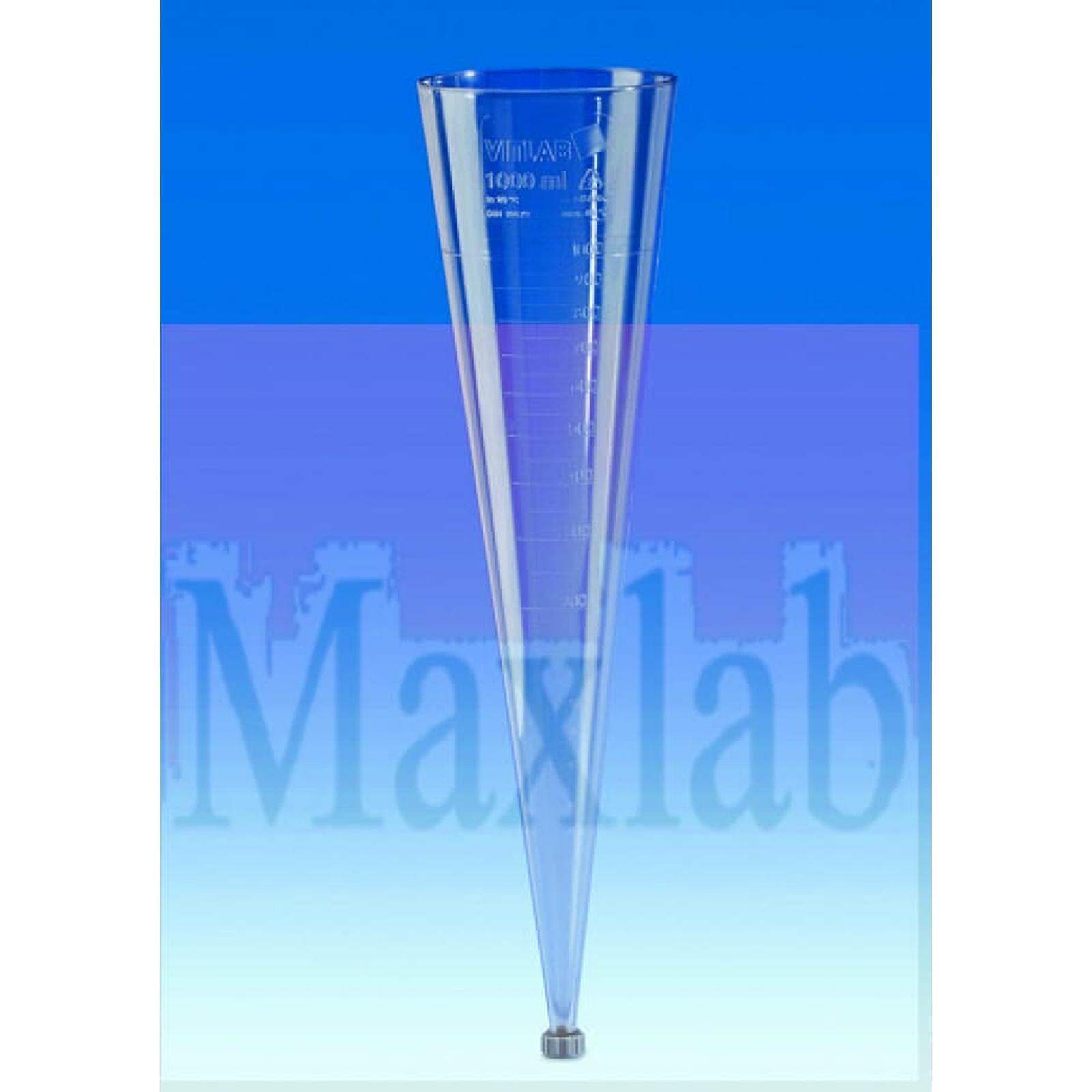 Corong dengan kapasitas 1.000 ml (1 Liter) digunakan untuk mempermudah terjadinya pengendapan / sedimentasi, karena bentuk dan dimensi kerucut yang dibuat khusus dan dilengkapi dengan skala volum dam bahan yang memiliki resistensi baik terhadap bahan kimia