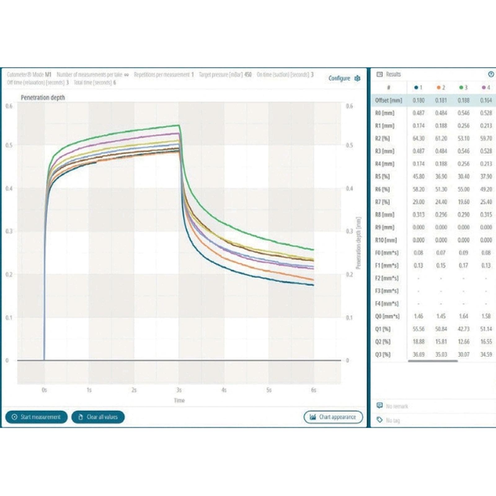Pengukuran dengan Cutometer digunakan sebagai standar dalam penelitian anti-penuaan dan tata rias.